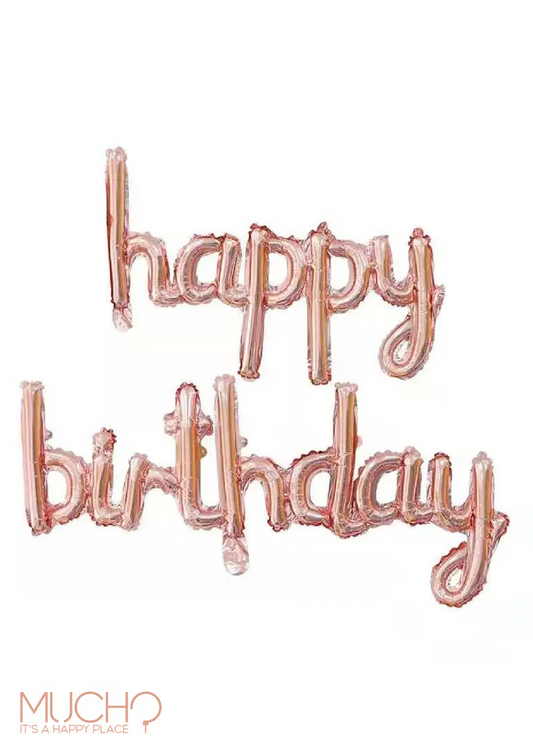 لافتة بالونات عيد ميلاد سعيد باللون الذهبي الوردي