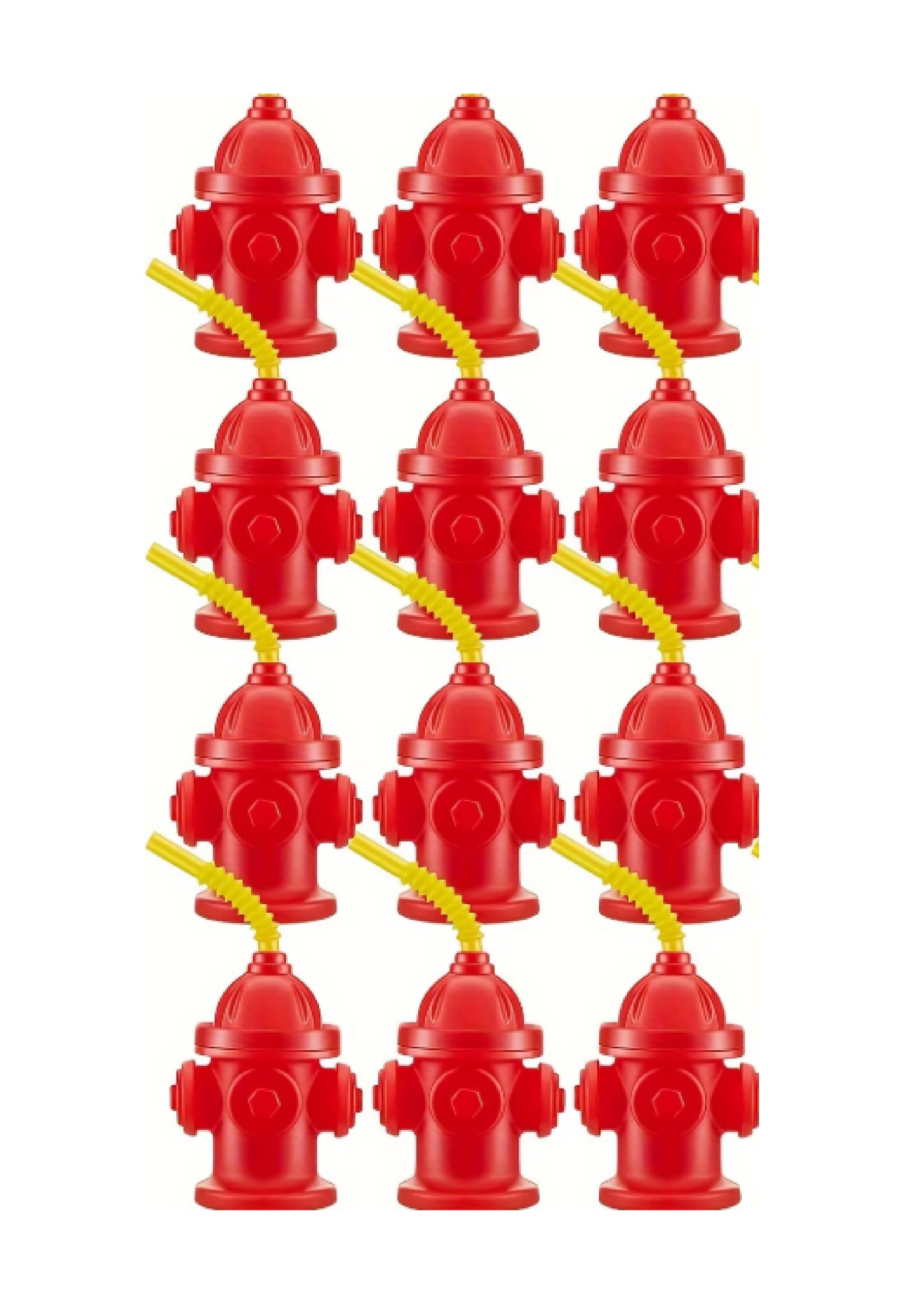 Fire Hydrant Plastic Cups with Lids & Straws (Pack of 12)