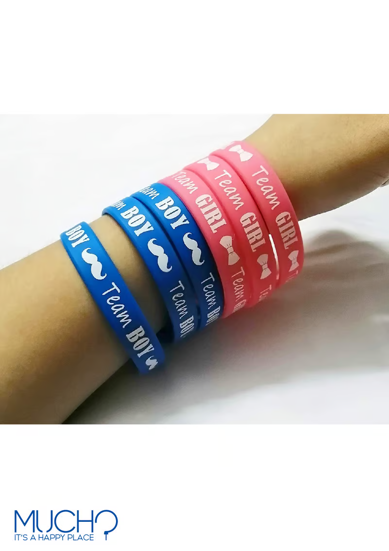 تتميز بتصميم أنيق مع عبارة "Team Boy" و"Team Girl" مزخرفة بجرأة على كلا الجانبين، وهذه الأساور بمثابة وسيلة ممتعة وتفاعلية لأصدقائك وعائلتك لاختيار جوانبهم وإجراء تنبؤاتهم. الألوان النابضة بالحياة، الأزرق لفريق Team Boy والوردي لفريق Team Girl، تجعل من السهل على الجميع إظهار روح الفريق بكل فخر.