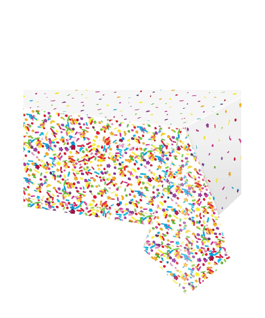 Sprinkle Party Decorations, Confetti Sprinkle Sweet Candy Plastic Tablecloth Rainbow Donut Birthday Party Table Cover for Baby Shower Kids Ice Cream Theme Party Supplies