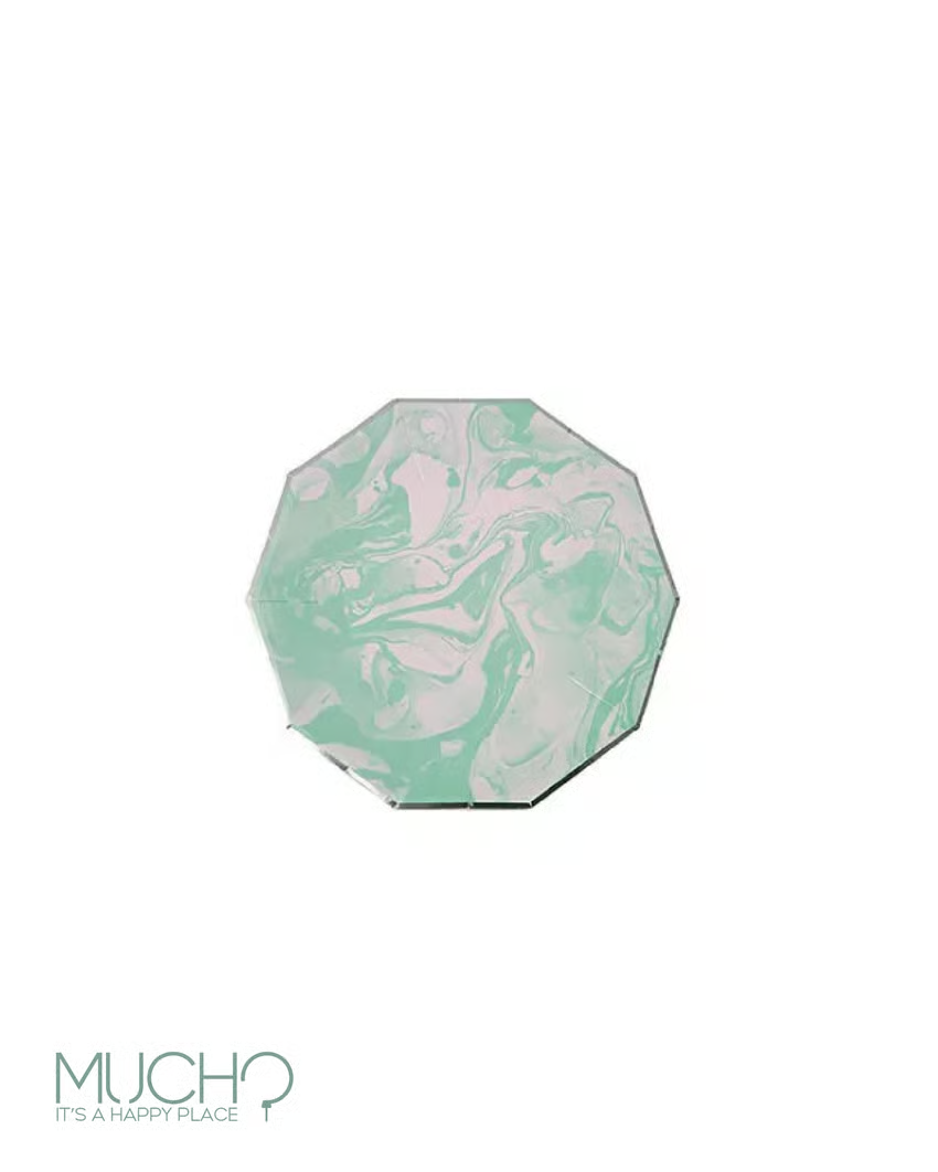 تتميز بنمط رخامي جميل باللون الأخضر النعناعي ومزينة برقائق فضية لامعة.